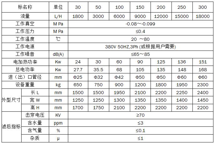 真空凈油機參數: