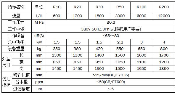 R系列聚結分離式凈油機參數: