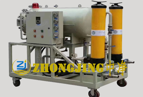 設備采用先進的聚結分離材料作為介質,集破乳化和精密過濾為一體。結合特制的油水分離裝置,能有效分離油中水分,脫水效率極高??蓪\行中的汽輪機組進行透平油的在線破乳化,脫水,除雜處理,同時也可以對含水量高的輕質油進行脫水,除雜處理。本機運行時無須加熱和抽真空,耗能低,運行成本低。采用手推車結構,輕巧靈活,使用方便。