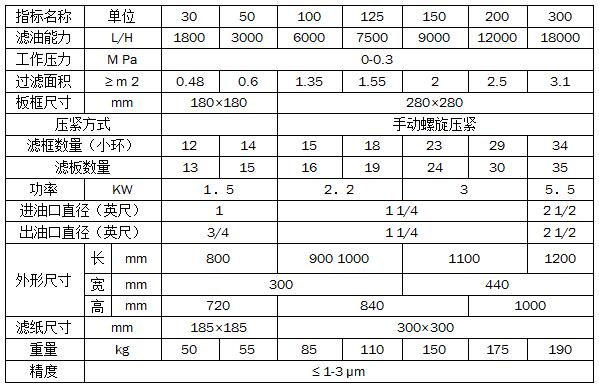 L系列透平油板框壓力式濾油機技術參數: