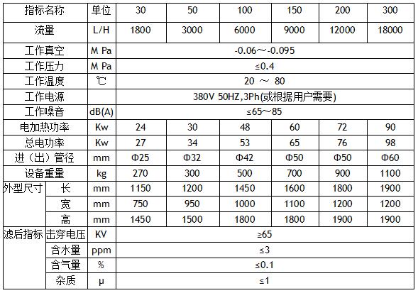 D系列高效絕緣油真空凈油機參數: