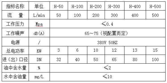 H系列大型油水分離成套設(shè)備參數(shù):